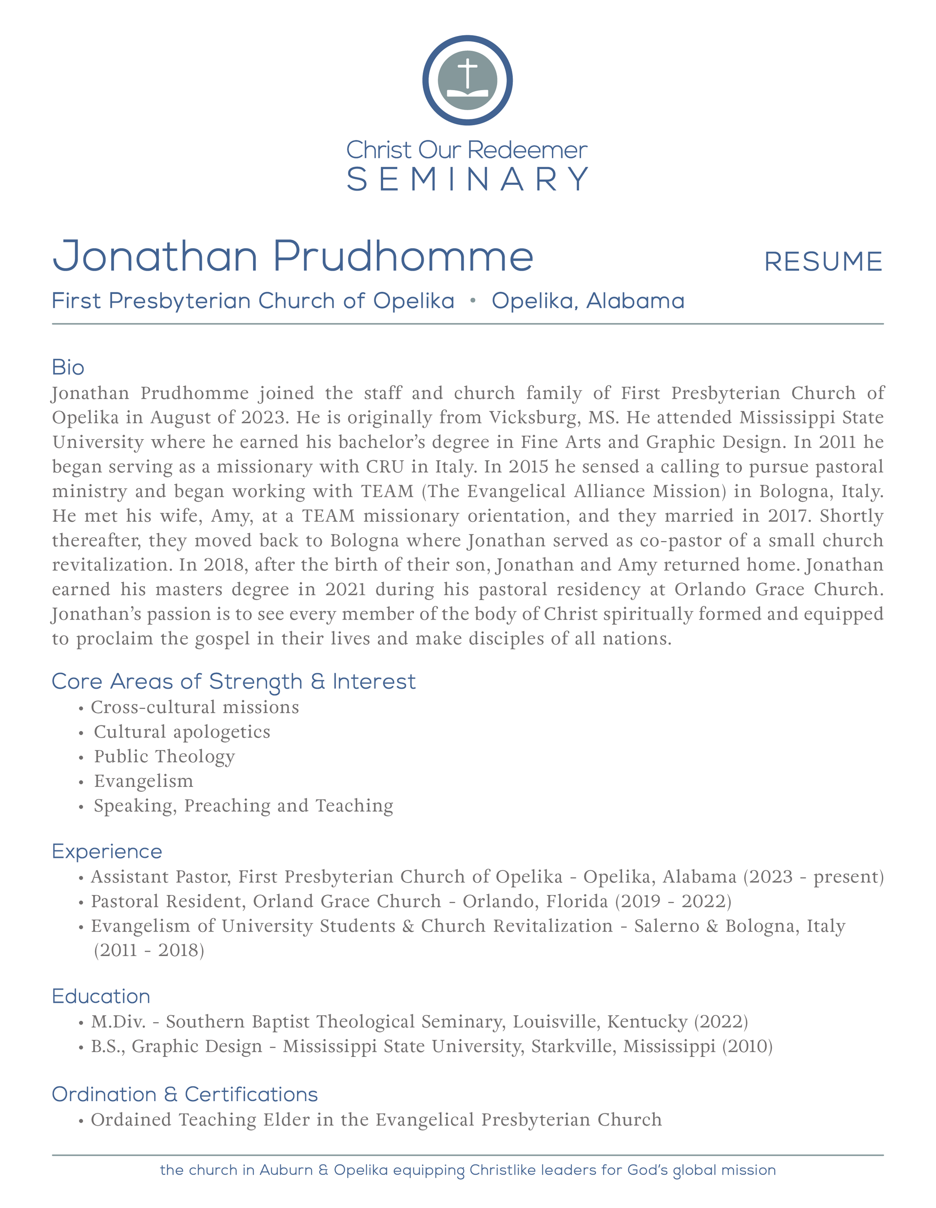 715 East Glenn Avenue, Suite 202 • Auburn, Alabama 36830 • info@christourredeemer.org